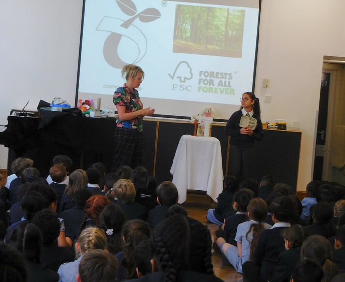 Huge thanks to one of our parents Annika who spoke to the school in assembly yesterday. Annika’s company produces sustainable, environmentally-friendly packaging. She gave us super useful tips about how we can take more care of the environment when we’re shopping.